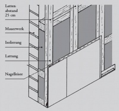Hinterlüftete Fassadenverkleidung Zierer Putzstruktur - oder auf Lattenkonstruktion mit Hinterlüftung